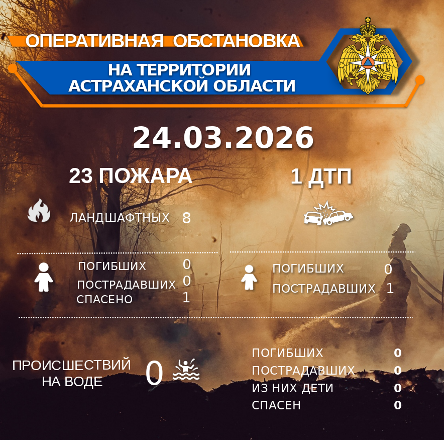 Оперативная обстановка на территории Астраханской области по состоянию на 00:00 24.03.2026