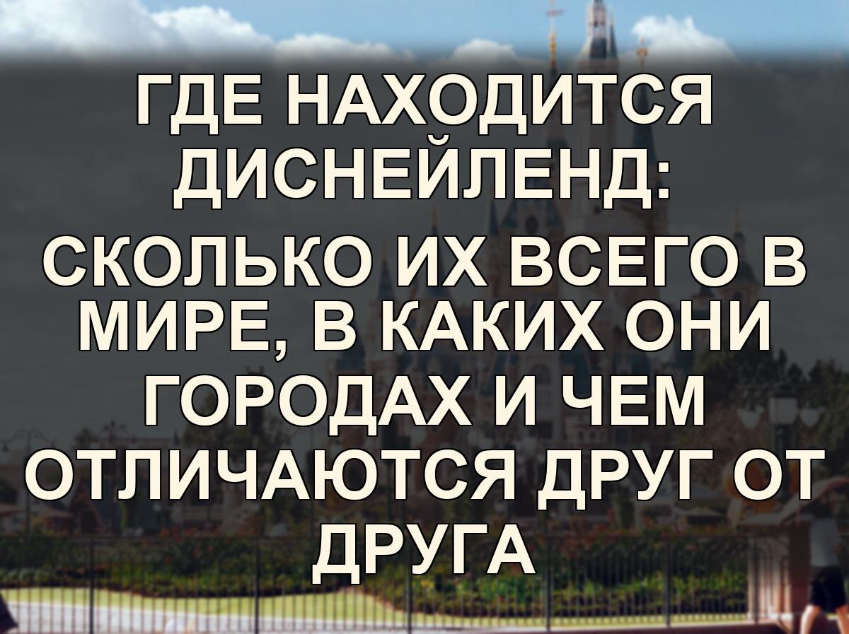 Диснейленды расположены в нескольких странах: самые известные находятся в США (Калифорния и Флорида), Франции, Японии, Китае (Шанхай и Гонконг) и ближайшие к ним в других регионах.