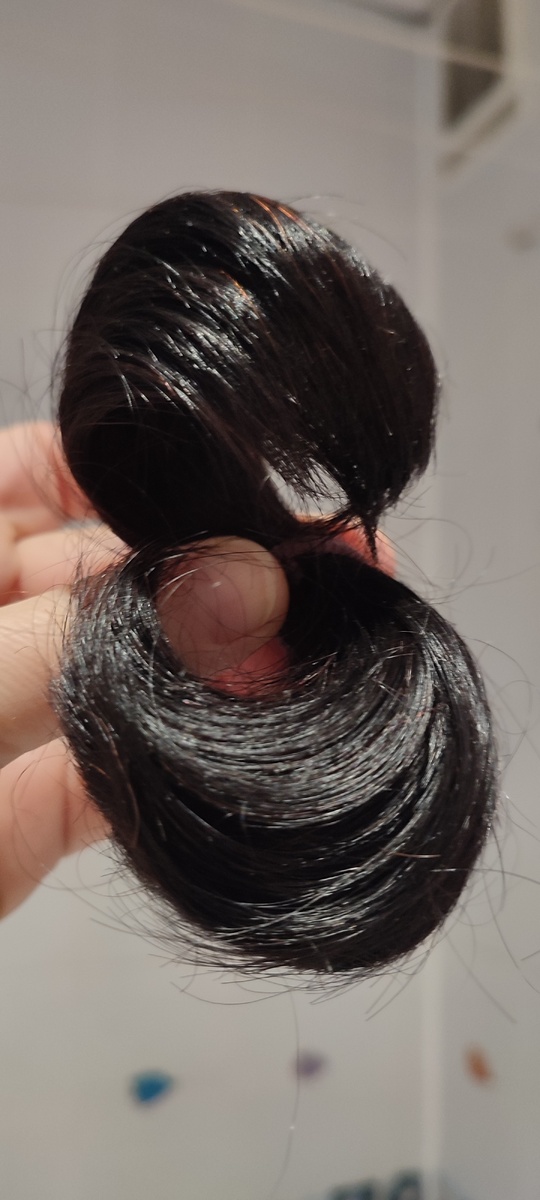 Пучок волос оставила на память, а мне сказали, что им можно кому-то ещё и плешь прикрыть! Дело было так, когда последний раз купила краску, это было в октябре 2021 года, решила часть волос срезать, а 2 ноября была записана к парикмахерскую, чтобы срезать ещё больше! Дело в том, что избавится от краски, когда у тебя длина не так просто. Поэтому решила, что часть волос возьму на себя, часть на парикмахера. Дочка срезает мне часть хвоста, уже нет краски на одну треть! Пушистый объемный получился отрезок! Маленькая кисточка, а держа в руках, всё равно было ощущение густоты. Но с возрастом даже она редеет, если ещё к ней добавлять оксидов, то это уже не так весело. Видите, седые не закрашиваются, даже в салоне, все ранво видны! Далее в ноябре я срезаю максимум что могу. Короче на себе волос не вижу и всё начинаю растить серебро! Удивительно сегодня смотреть на только, что крашенный блестящий волос, сравнивать его с тем, что имею сейчас. И знаете удалось повернуть время вспять