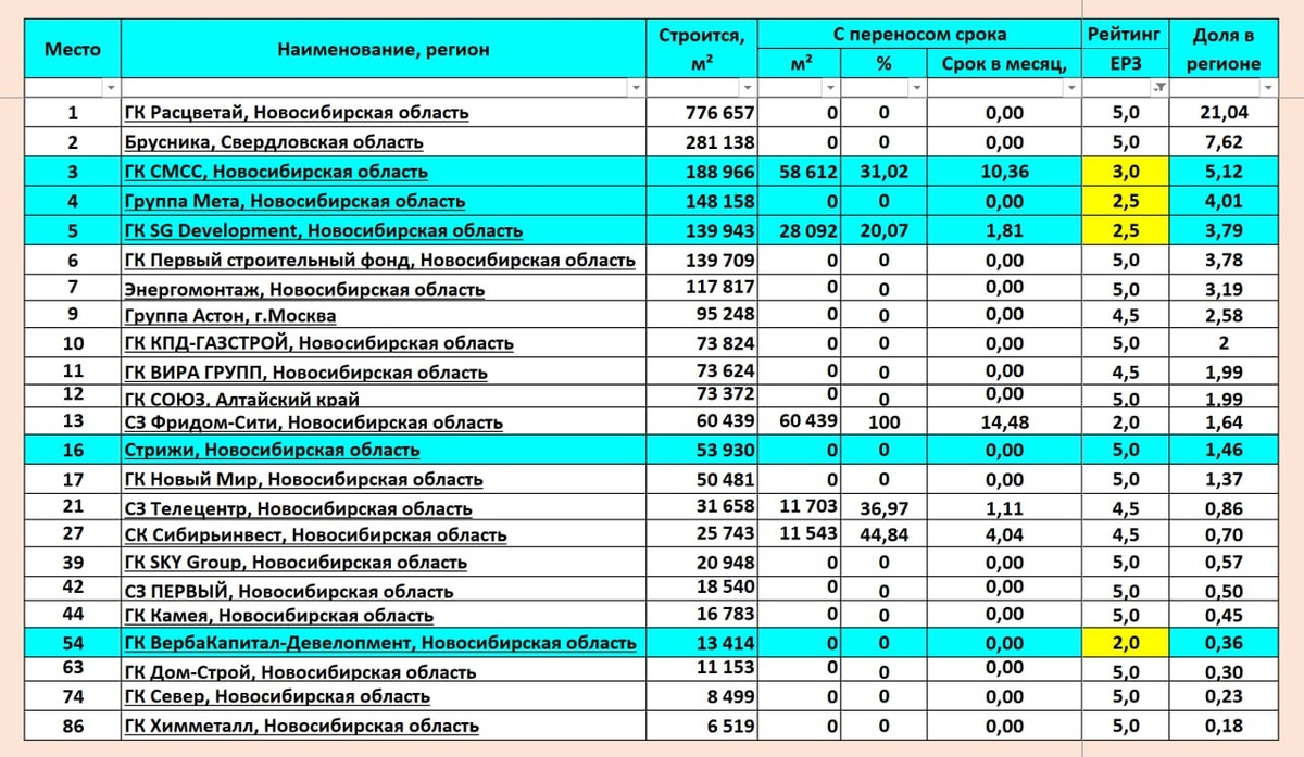 ⏬ Текущий рейтинг ЕРЗ обнулил победителей премии бизнес- издания «Деловой квартал» в номинации «Строитель года» за 2024-2025 годы
