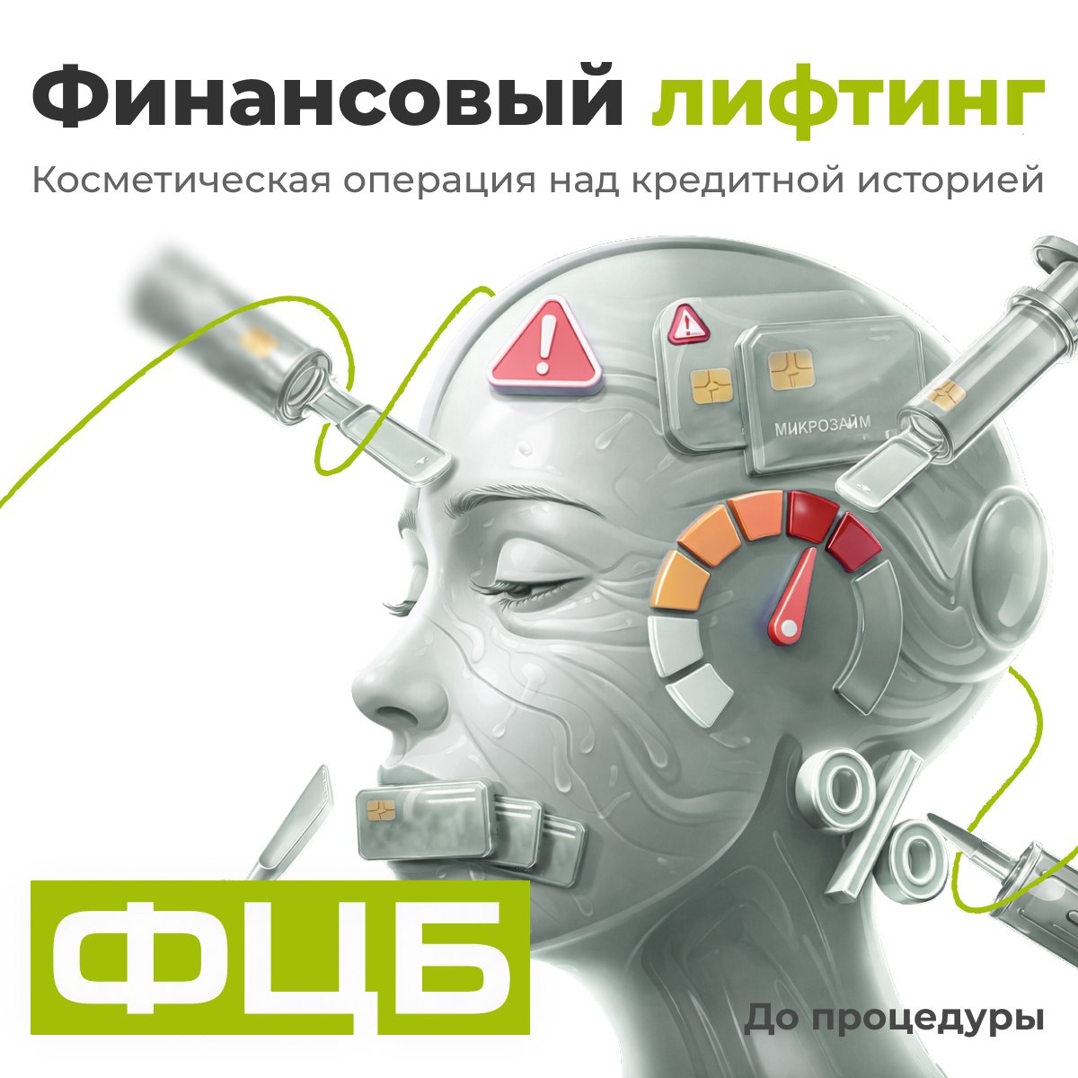 Знаете, как бывает: лицо вроде ухоженное, но морщинки выдают возраст. С кредитной историей то же самое — вроде всё при вас, но банки видят «возрастные изменения»: ошибки, просрочки, чужие долги. И ставки задирают, а то и вовсе отказывают. 👩⚕️ Добро пожаловать в клинику пластической хирургии кредитных историй — «Финансовая забота» от ФЦБ. Ваша кредитная история после наших процедур будет выглядеть на миллион (буквально). Эта процедура крайне важна для тех, кто уже прошел банкротство - для того, чтобы не только вернуться к возможности кредитования, но и для восстановления своей финансовой репутации. Что мы предлагаем: 🔹 Контурная пластика — убираем «морщины»: все ошибки, дубли, чужие микрозаймы. Лицо становится гладким. 🔹 Липофилинг — добавляем объём там, где нужно: с помощью «Кредитного доктора» формируем новые положительные записи. Рейтинг растёт как на дрожжах. 🔹 Блефаропластика — открываем глаза банкам: теперь они видят только вашу идеальную историю. 🔹 Подтяжка лица — возвр