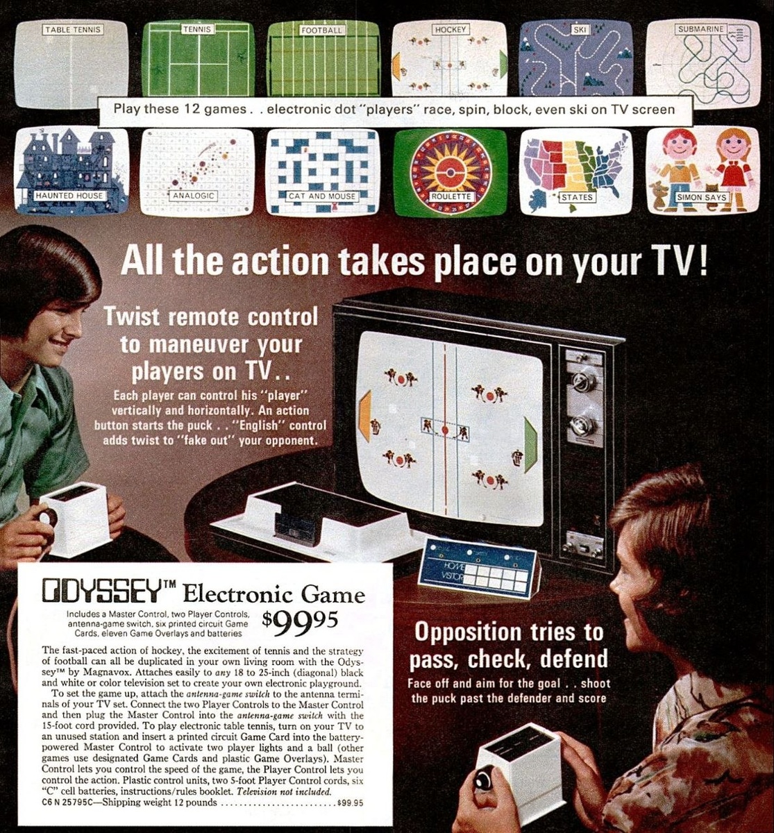 📟 Факт: Задолго до PlayStation и Xbox, в 1972 году, вышла Magnavox Odyssey. 🔋 Технические детали: · В ней не было микропроцессора — только 40 транзисторов и 40 диодов. · Питалась она от батареек! · Графика была настолько условной, что к консоли прилагались накладки-слайды на экран телевизора — поля, ворота и задники, чтобы придать смысл белым квадратикам. 💬 И никакого вам 8K и трассировки лучей. #MagnavoxOdyssey #перваяприставка #ретроконсоли #историяигр #техника