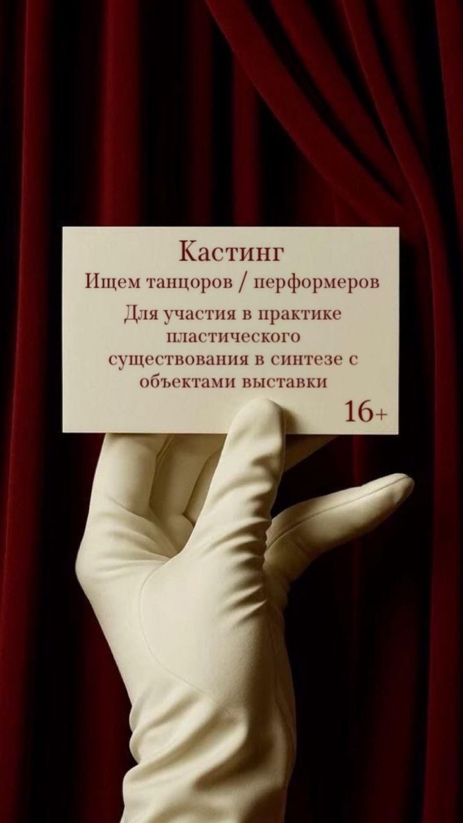 Москва 🔻28.03-04.04.26🔻 Ищем танцоров/перформеров для участия в индивидуальной практике «пластическое существование в синтезе с объектами выставки» УЧАСТИЕ В ПРАКТИКЕ — БЕСПЛАТНОЕ ТВОРЧЕСКИЙ ОРИЕНТИР ДЛЯ УЧАСТНИКОВ: • Найти комфортную точку в пространстве для изучения своих ощущений и переживаний • Проявить ваше впечатление/ощущения от объектов выставки с помощью невербального общения-пластики • Попытаться погрузить зрителей выставки в собственное виденье образов, возникающих при изучении объектов в пространстве(по желанию) • Получить удовольствие и полезный опыт от синтеза искусств🤗 Буду очень рада ответить на вопросы будущих участников «Коллективной выставки» КАК ПРИНЯТЬ УЧАСТИЕ Для участия необходимо прислать: 1. ФИО 2. Контакты для связи 3. Описание творческого опыта 4. Видео вашей хореографии (лучше импровизации) ЗАПИСАТЬСЯ И ЗАДАТЬ ВОПРОСЫ vk.ru/julia_shalimova111 Tg: @Kolba111 --------------- Опубликовать своё объявление в канале "Танцоры и хореографы России" жми сюда