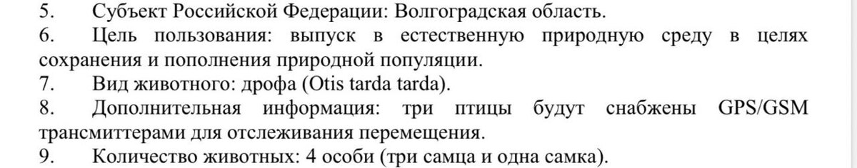 Эти хладнокровные строчки из разрешения Росприроднадзора на выпуск дрофы предзнаменуют историческое событие