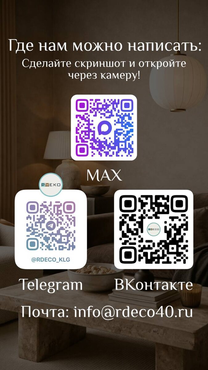 : MAX ВКонтакте Нельзяграм Электронная почта: info@rdeco40.ru 💌