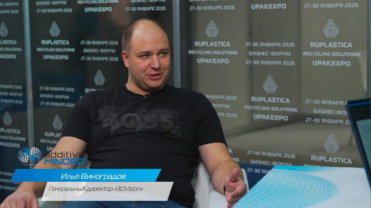На полях выставки RUPLASTICA 2026 в Москве, сразу после завершения сессии ADDITIVE MINDED, мы встретились с Ильей Виноградовым, генеральным директором компании «3ДВижн» (бренд 3DVision). Сегодня это один из ключевых игроков российского рынка аддитивных технологий, но так было не всегда. Всего за несколько лет компания совершила впечатляющую трансформацию: от модели заработка на услугах 3D-печати и литья в эластичные формы до статуса эксклюзивного дистрибьютора EPlus3D в СНГ. Путь, который Илья называет «от силикона до промышленности», привел их к пятому месту в мире среди партнеров китайского гиганта по объему продаж. «Поначалу производитель просто не верил в наши цифры», — признается Виноградов. Однако главное в разговоре — не статистика, а философия интеграции. В «3ДВижн» уверены: поставить принтер — еще не значит внедрить технологию. Компания принципиально отказывается от продаж «голого» оборудования. Каждая сделка сопровождается поставкой взрывобезопасной сеялки, систем распаковк