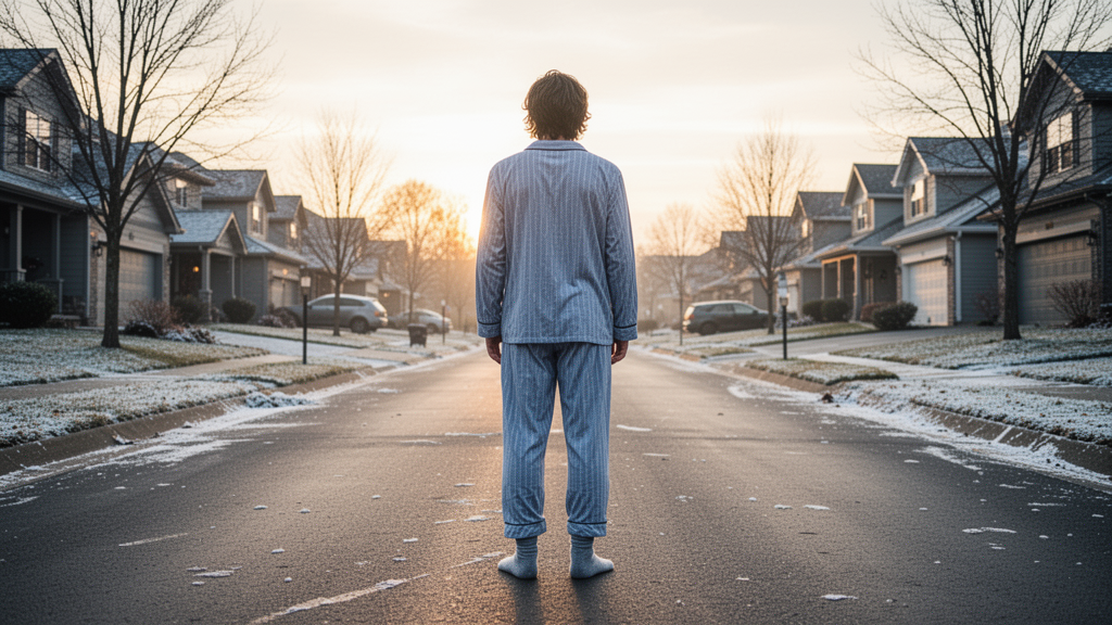 Представьте: вы просыпаетесь посреди ночи на холодной улице, в одних носках и пижаме, а вокруг вас бегают люди с оружием и кричат что-то про зомби. И вы не понимаете — это сон, галлюцинация или вы окончательно сошли с ума. Именно это со мной и произошло. Всё началось с того, что мы с женой переехали в новый спальный район на окраине города. Тихий, спокойный, для семей с детьми. Мы купили здесь квартиру в ипотеку, выбились из сил, но были счастливы — своё жильё, двор, детская площадка. Я работаю инженером на заводе, привык вставать в шесть утра, ложиться в десять. Жизнь по расписанию, как часы. У меня с детства есть одна особенность — иногда я хожу во сне. Не часто, раз в несколько лет. Обычно это безобидные вещи: встану, попью воды, вернусь в кровать. Жена даже шутит, что я как робот — выполняю программу и отключаюсь. Никаких эксцессов не было никогда. До этой ночи. Я помню, как лёг спать после долгого дня. На работе аврал, дома ремонт в детской, устал как собака. Заснул мгновенно. А д