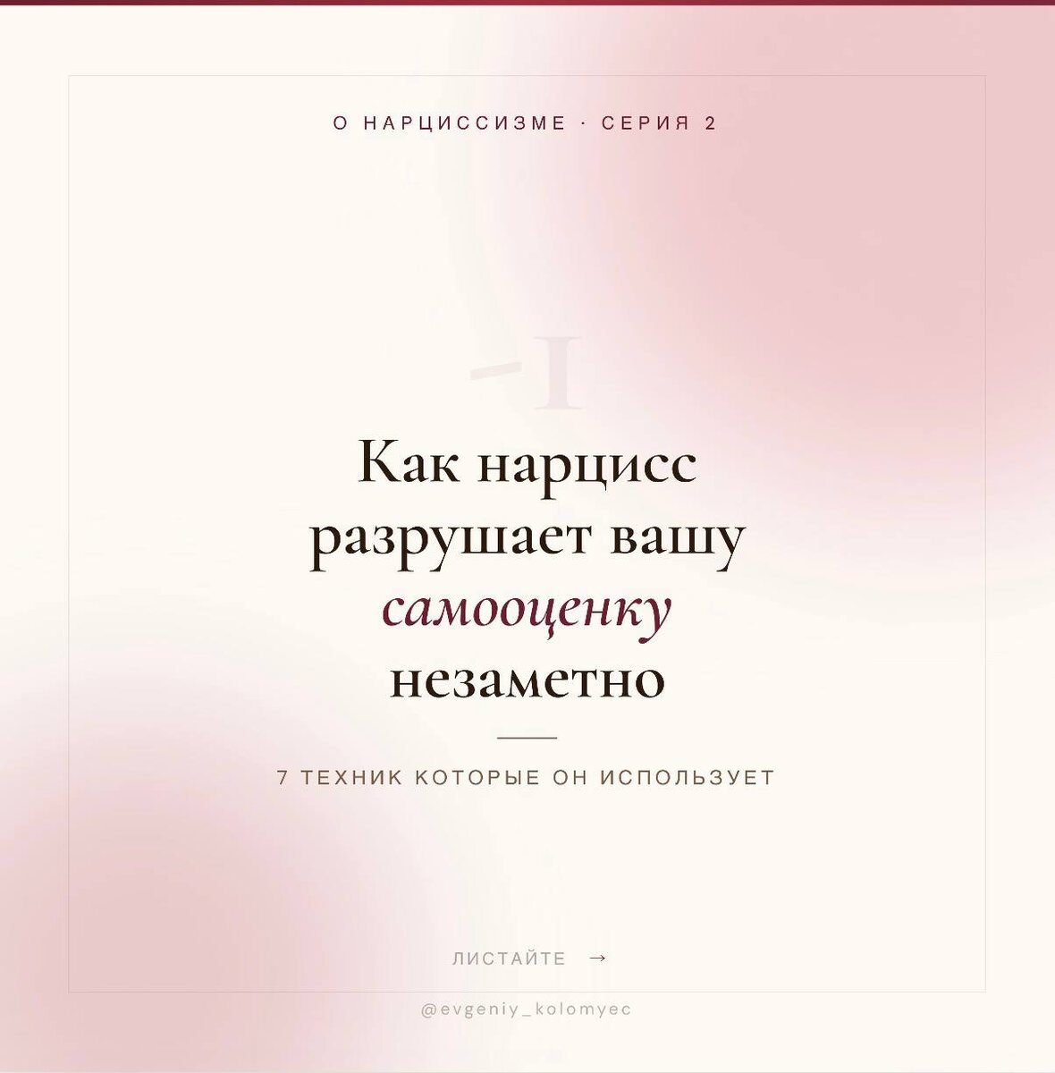 Он не приходит и не говорит: «сейчас я буду тебя разрушать». Он заботится. Шутит. Сравнивает. Напоминает. И через год-два ты уже другой человек - тише, осторожнее, меньше веришь себе. 7 техник которые он использует: 1. Критика под видом заботы 😔 «Я говорю это потому что люблю тебя». За заботой - постоянное указание на недостатки. Вы начинаете верить что он видит вас лучше чем вы сами. 2. Обесценивание достижений 📉 «Ну и что, это несложно». «Тебе просто повезло». Вы перестаёте радоваться своим результатам и ищете его одобрения. 3. Газлайтинг 🌫 «Я такого не говорил». «Ты всё придумываешь». Доверие к себе - к своей памяти и восприятию - разрушается. 4. Горячий и холодный 🔥❄️ Нежность - потом резкое охлаждение без объяснений. Вы ищете что сделали не так и стараетесь ещё сильнее. 5. Публичное унижение в мягкой форме 😶 Шутки про вас при других. Все смеются. Вам неловко. Возразить нельзя - «это же шутка». 6. Триангуляция 👥 Бывшая. Коллега. «Вот она бы так не сделала». Вы начинае