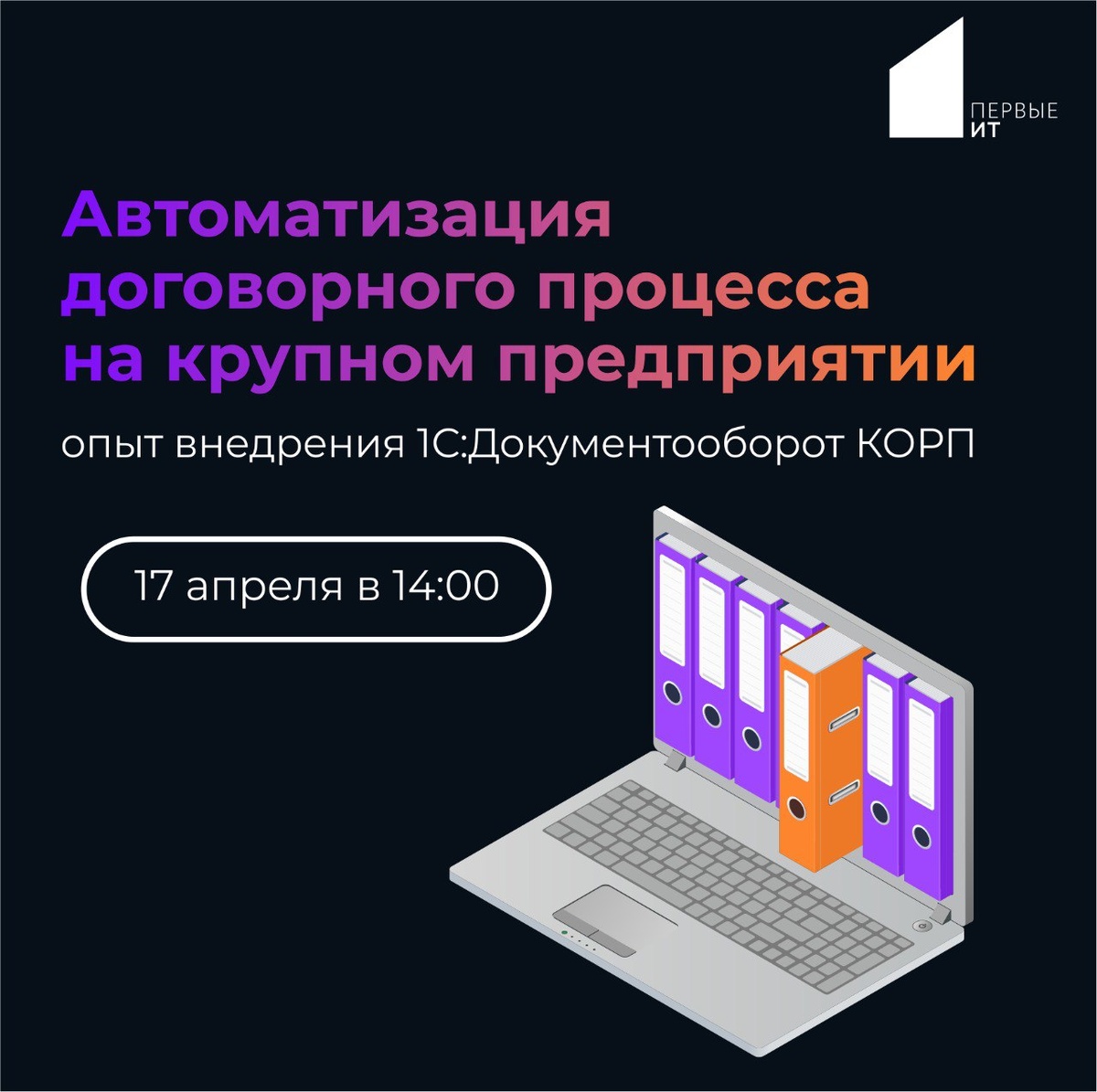 Во многих компаниях работа с документами до сих пор выстроена неэффективно: файлы хранятся в разных местах, согласования идут неделями, а найти нужный документ – отдельная задача 😣 Сегодня, в условиях цифровой трансформации, автоматизация документооборота уже не опция, а необходимость 📚 Поэтому я приглашаю вас на вебинар: 🖥 «Автоматизация договорного процесса на крупном предприятии: опыт внедрения 1С:Документооборот КОРП» 📅 17 апреля 🕑 14:00 (мск) 🔗 Регистрация На вебинаре разберём как автоматизация договорных процессов поможет: ■ сократить время обработки документов в 2–3 раза ■ исключить человеческий фактор и ошибки ■ обеспечить мгновенный доступ к любой информации ■ выстроить прозрачные процессы документооборота 🎙 Спикер: Татьяна Кочнова – директор отдела внедрения и проектов компании «Первые ИТ» — более 15 лет опыта в проектах 1С — эксперт в автоматизации процессов регламентированного учета и документооборота 🎯 Кому будет полезно: • генеральным директорам • руководителям к