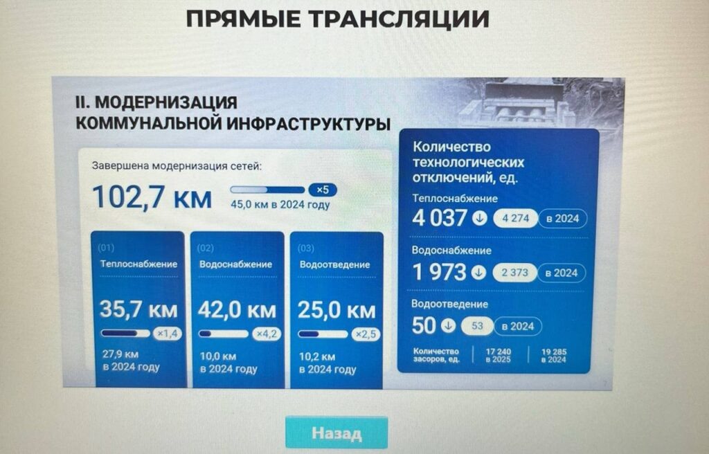 Глава Челябинска Алексей Лошкин выступил на заседании городской думы с отчетом о результатах работы администрации в 2025 году. В ходе доклада были озвучены данные о модернизации коммунальной инфраструктуры. «Всего модернизировано 102,7 км коммуникаций, в том числе 35,7 км сетей теплоснабжения, 42 км – водоснабжения и 25 км – водоотведения. Справиться с задачей помог проект губернатора Алексея Текслера «Большой ремонт 74», – приводит слова Алексея Лошкина гордума. В ходе презентации уточнялось, что в 2024 году было модернизировано только 45 км коммунальных сетей. Увеличение объема работ привело к снижению количества технологических отключений. Согласно данным презентации, произошло 4 037 отключений на объектах теплоснабжения (-237), 1 973 – водоснабжения (-400), 50 – водоотведения (-3). Сократилось также количество засоров: их число снизилось с 19,3 тыс. до 17,3 тыс. Читайте больше у нас на сайте
