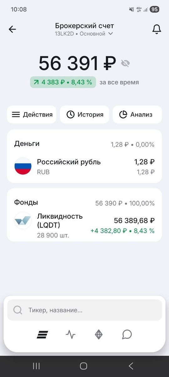Вторник, пополняю брокерский счет на 1 000 рублей и покупаю фонд ВИМ Ликвидность. Делаю это уже почти год, осталась одна неделя и будет ровно один год. Совсем скоро будет мое последнее публичное пополнение, подведу итоги (хотя, вы и сами уже можете сделать свои выводы, если наблюдаете за #копимвместе ). Начала 1 апреля 2025 года с пустого счета. Доход за все время + 4 383 руб