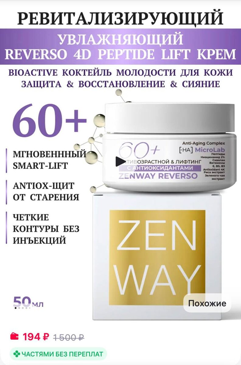 ZenWay Увлажняющий дневной REVERSO 4D PEPTIDE LIFT крем 60 плюс