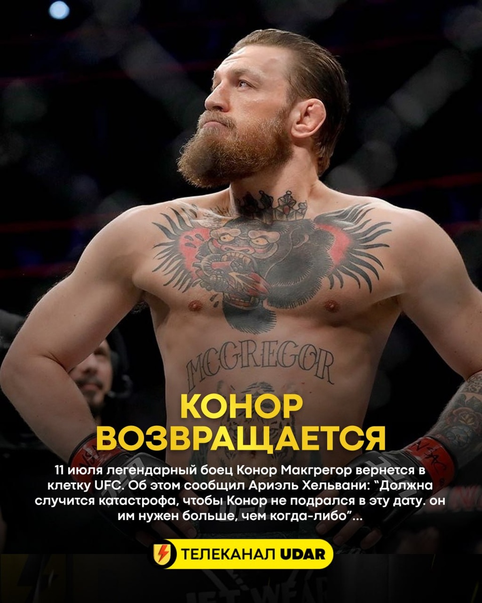 ⚡️Конор Макгрегор проведет следующий бой 11 июля: об этом сообщил авторитетный журналист Ариэль Хельвани