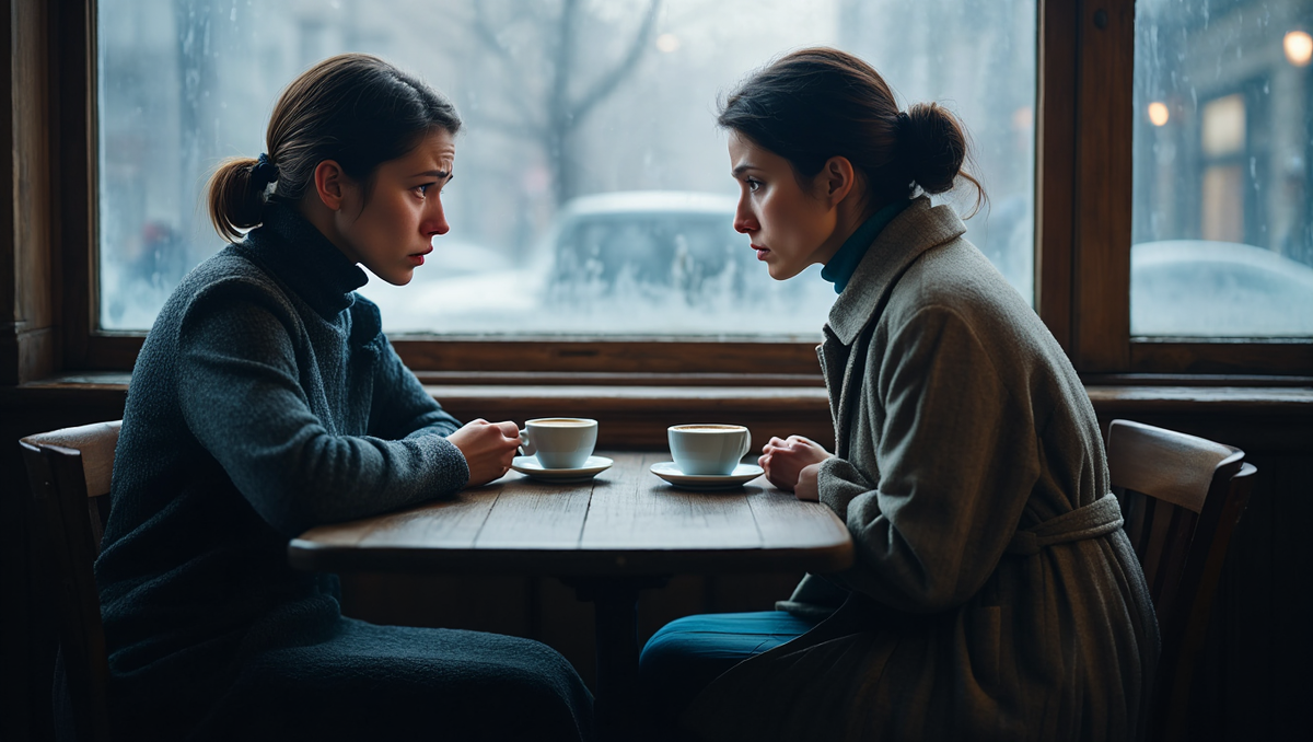 Они смотрели друг на друга через стол. Между ними стояли две чашки кофе, который никто не пил, и восемнадцать лет, которые вдруг стали очень тяжёлыми.
