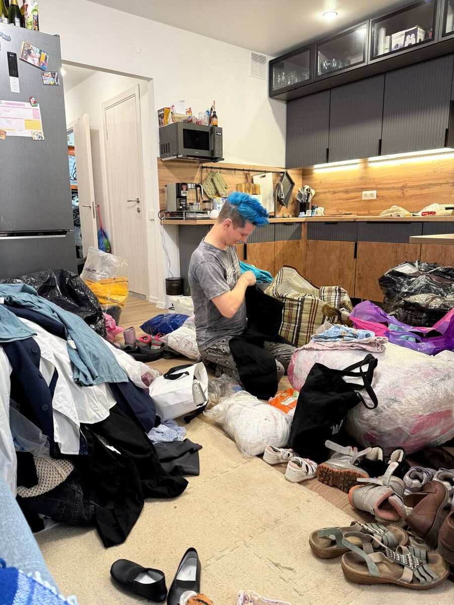 😄😂 А все потому, что вчера Алексей затеял разбор нашей кладовки, потому что в ней стало катастрофически не хватать места из за того что слишком много старых вещей Поэтому вчера разбирали весь день вещи (ну как разбиралИ😅 Лёша разбирал и складывал, а я командовала парадом с мелким на руках 😂) Сортировали на три категории: 1) благотворительность или отдать кому то 2) оставляем то что еще будем носить 3)на выброс Вот такая эстетика рынка вчера царила в нашем доме 😂