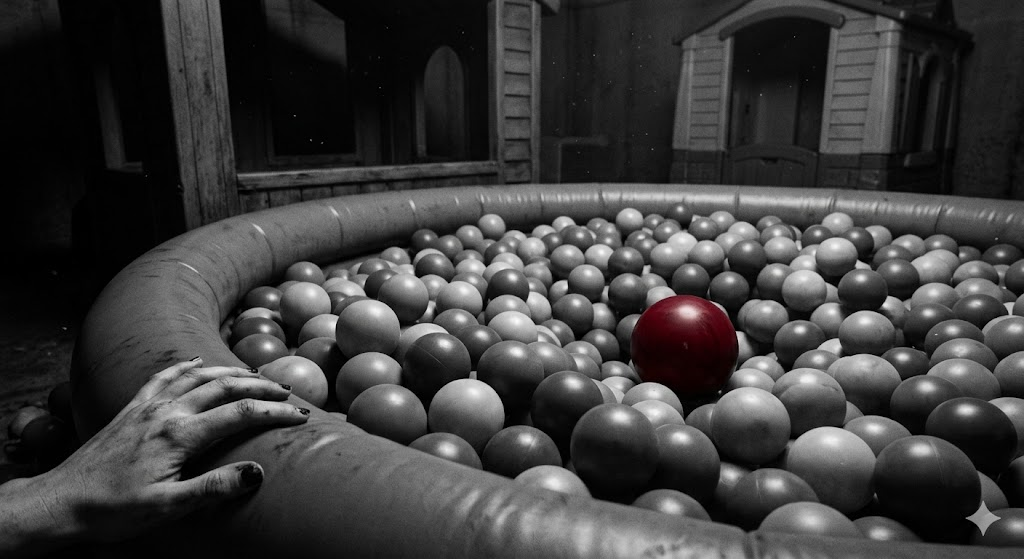 Свет мигнул и загорелся. Теперь, в ночной тишине, подвал выглядел в десять раз зловещее. Прямо как на фотографиях заброшенных луна-парков. Было что-то глубоко тревожное в этом контрасте: пестрые горки и улыбающиеся морды плюшевых зверей на фоне мертвой тишины, теней и ощущения упадка. Игровой форт нависал надо мной, сверху злобными глазками-бусинками пялилась игрушечная летучая обезьяна. В резком свете поблескивали яркие шарики в бассейне — красные, зеленые, желтые.