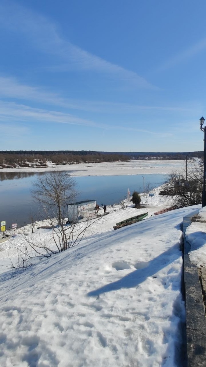 Стою… сзади— Ока, которая уже частично освободилась ото льда.