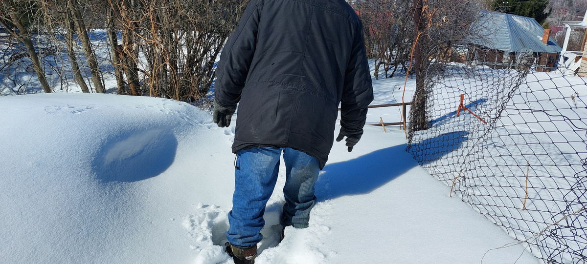 Вот мы с Василием опять и отличились в нашем стремлении увидеть насколько там плохи дела и три дня назад мы туда решили сходить и посмотреть. Ну как сходить? Просто пройти к даче от трассы через очень заснеженную целину с глубоким снегом.
