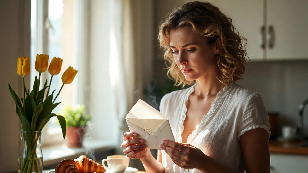 Зато был кофе — её любимый, из зёрен, которые он никогда не покупал, потому что дорого. Рядом лежали круассаны, тёплые ещё, — из той пекарни за углом, куда она сто раз собиралась зайти, но всё как-то не доходила.