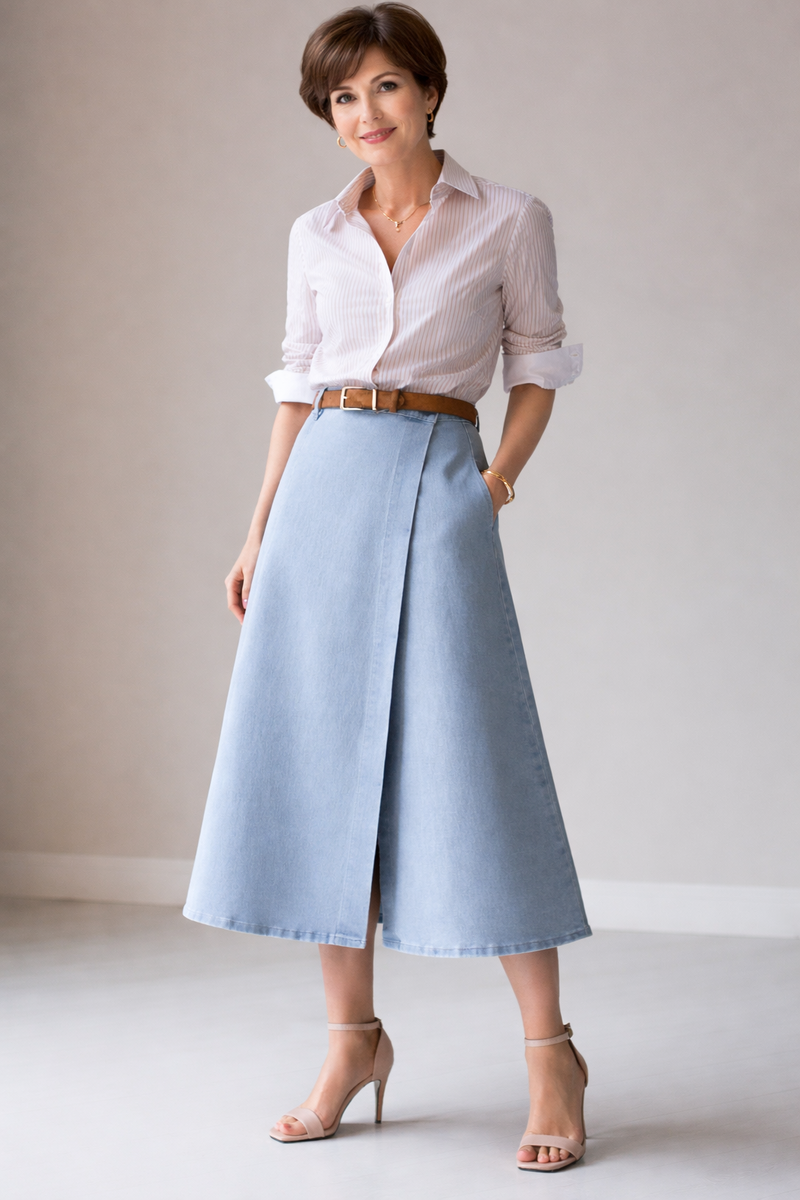 Видите, дело никогда не в возрасте и не в том, «можно ли» носить джинсовую юбку. Вопрос всегда в деталях: длина, посадка, линия швов, плотность ткани и баланс с верхом.