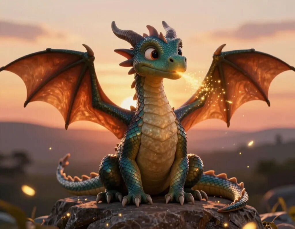 Сказка про доброго дракона, который стеснялся своего огненного дыхания В далёкой долине, за высокими горами и густыми лесами, жил дракон по имени Огонёк. Он был совсем не похож на тех грозных драконов, о которых рассказывали в страшных сказках. У Огонька была золотистая чешуя с алыми переливами, большие добрые глаза и сердце, полное тепла. Но была у него одна проблема: Огонёк очень стеснялся своего огненного дыхания. Каждый раз, когда он пытался заговорить с кем‑то, волнение заставляло его случайно выпускать маленькие язычки пламени — и все вокруг пугались и разбегались. «Почему я такой? — думал Огонёк, сидя на вершине холма и глядя на далёкую деревню. — Все драконы пугают людей, а я просто хочу с ними подружиться…» Однажды утром, глядя на дым, поднимающийся из труб домов, Огонёк придумал план. «Если люди боятся огня, — рассуждал он, — может, я смогу использовать своё дыхание так, чтобы оно приносило пользу, а не вред?» Он полетел к деревне, держась высоко над крышами, чтобы никого не