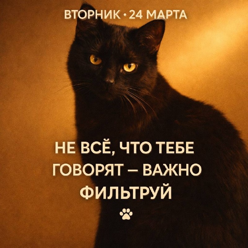 🌌 АСТРОПОГОДА День слов и смыслов. Можно договориться… а можно всё испортить одной фразой. ♈️ Овен 💼 Не дави — тебя и так слышат. 💞 Осторожнее с резкостью. ☕️ Энергия есть, но язык быстрее. 🐾 Сначала подумай. Потом скажи. ♉️ Телец 💼 День переговоров и договорённостей. 💞 Тёплый разговор многое решит. ☕️ Спокойствие держит тебя в ресурсе. 🐾 Мягкость сейчас сильнее упрямства. ♊️ Близнецы 💼 Много информации — не всё важно. 💞 Лёгкость в общении, но не поверхностность. ☕️ Перегруз от слов. 🐾 Фильтруй. Даже себя. ♋️ Рак 💼 Лучше недосказать, чем сказать лишнее. 💞 Чувства глубже, чем слова. ☕️ Эмоциональная усталость. 🐾 Тишина тоже ответ. ♌️ Лев (без сердца 😏) 💼 Ты задаёшь тон — не перегибай. 💞 Внимание к деталям спасёт ситуацию. ☕️ Не бери всё на себя. 🐾 Влияние — это не давление. ♍️ Дева 💼 День, когда важно не застрять в деталях. 💞 Не анализируй чувства до конца. ☕️ Ментальная перегрузка. 🐾 Остановись. И выдохни. ♎️ Весы 💼 Переговоры — твоя сцена. 💞 Важно