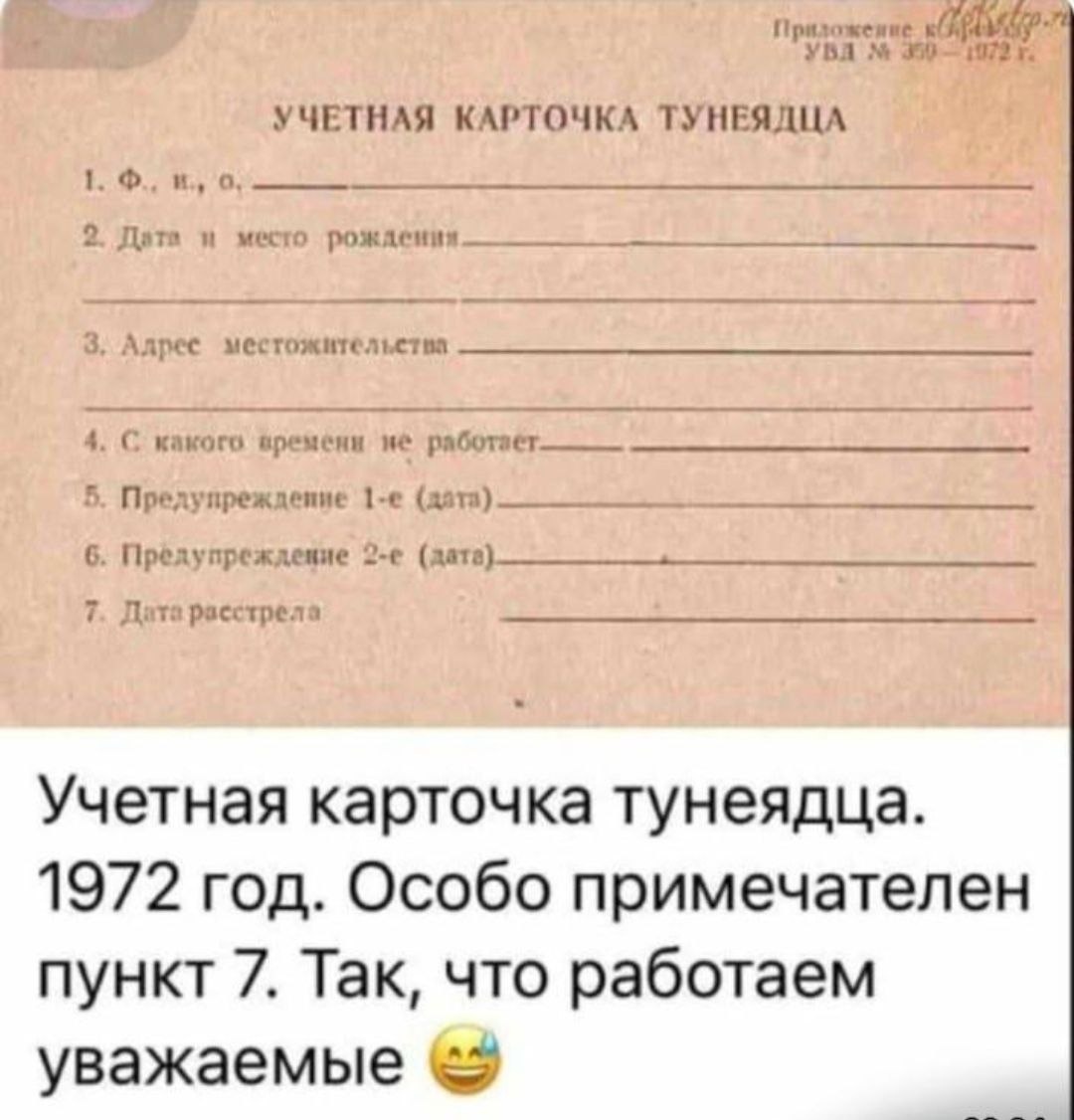 Людку, посадили на 15 суток ...нет! Не за пьянку, не за драки, и даже не за ворованные телефонные аппараты. А за ТУНЕЯДСТВО!