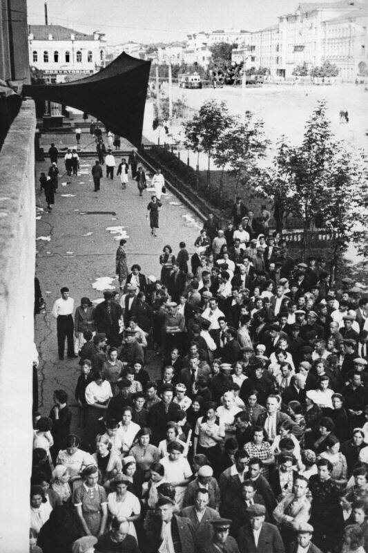 Жители Свердловска внимают выступлению В. Молотова, посвящённому нападению Германии на Советский Союз