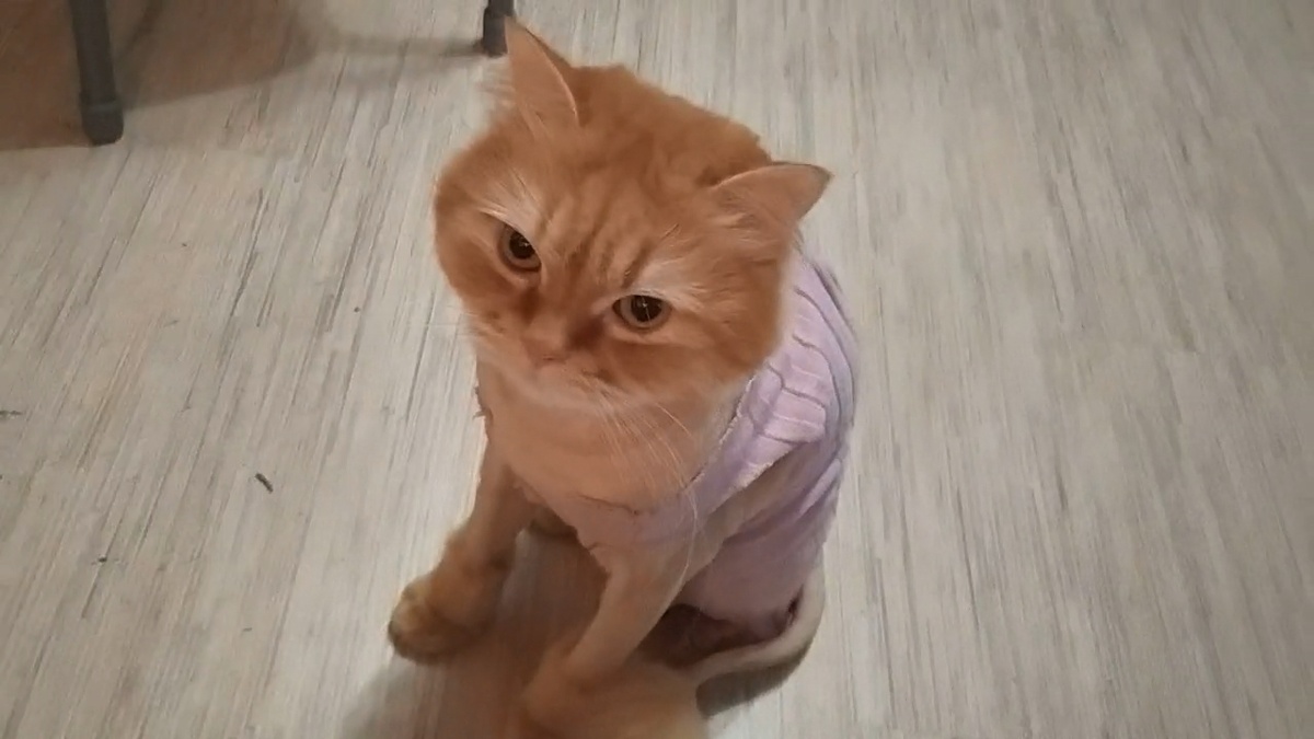 Возили Роника к груммеру. Наводить порядок с шерстью, за зиму заросшей и свалявшейся до невозможности расчесывания. Пошили ему розовую кофточку и ходит теперь Роник, сверкает велюровой попой с шикарным львиным хвостом. На столько вид кота изменился, что Мусяндра с перепугу его сразу и не признала шипела, рычала часа два. Потом только принюхалась и угомонилась. А Ричик Роника признал сразу, как только получил по любопытной морде привычной рыжей лапой. Ссылка на видео в ОК: