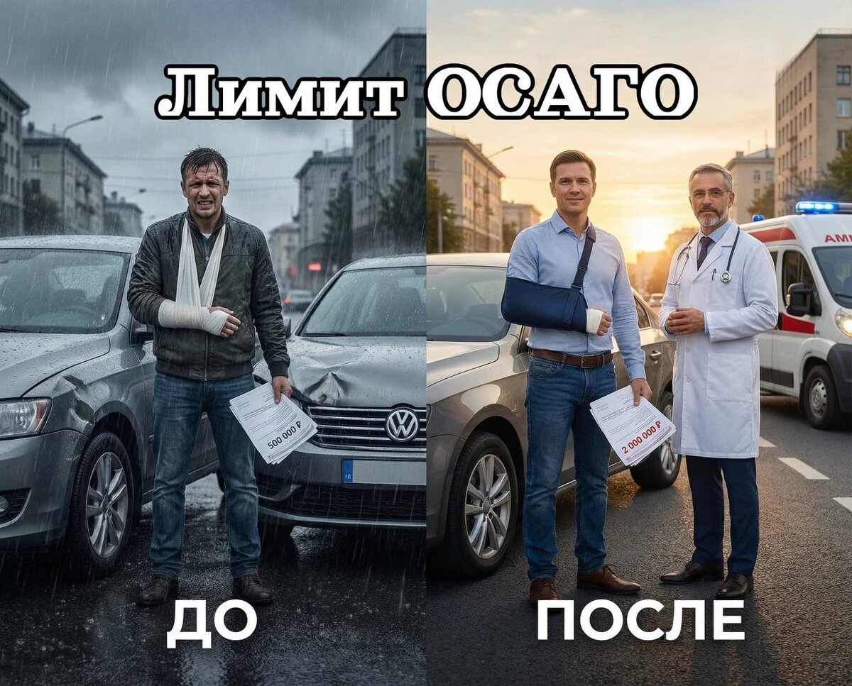 Ну что, эпопея с увеличением лимитов по ОСАГО, похоже, сдвинулась с мёртвой точки 👀 Долго спорили, обсуждали, тянули — и вот наконец договорились. Главная новость: лимиты по жизни и здоровью увеличивают сразу в 4 раза — до 2 млн рублей 💰 И это не слухи — об этом заявил президент Всероссийского союза страховщиков Евгений Уфимцев: «Мы вышли на то, что все-таки наконец будет корректироваться лимит до 2 млн рублей». Это реально важный шаг 👍 Потому что прежние суммы уже давно не выдерживали никакой критики — ни с учётом стоимости лечения, ни с учётом реальных рисков на дорогах. Про «железо» — то есть про выплаты за повреждённые машины — пока тишина. Лимит остаётся прежним: 400 000 рублей. И вот тут уже хочется задать логичный вопрос: вы вообще цены на ремонт видели? 🤦♂️ Даже самое лёгкое ДТП уже выходит за рамки этого лимита. Да, прозвучало, что к вопросу увеличения лимитов по имуществу «вернутся позже». В перспективе. Когда-нибудь ⏳ 🤷♂️