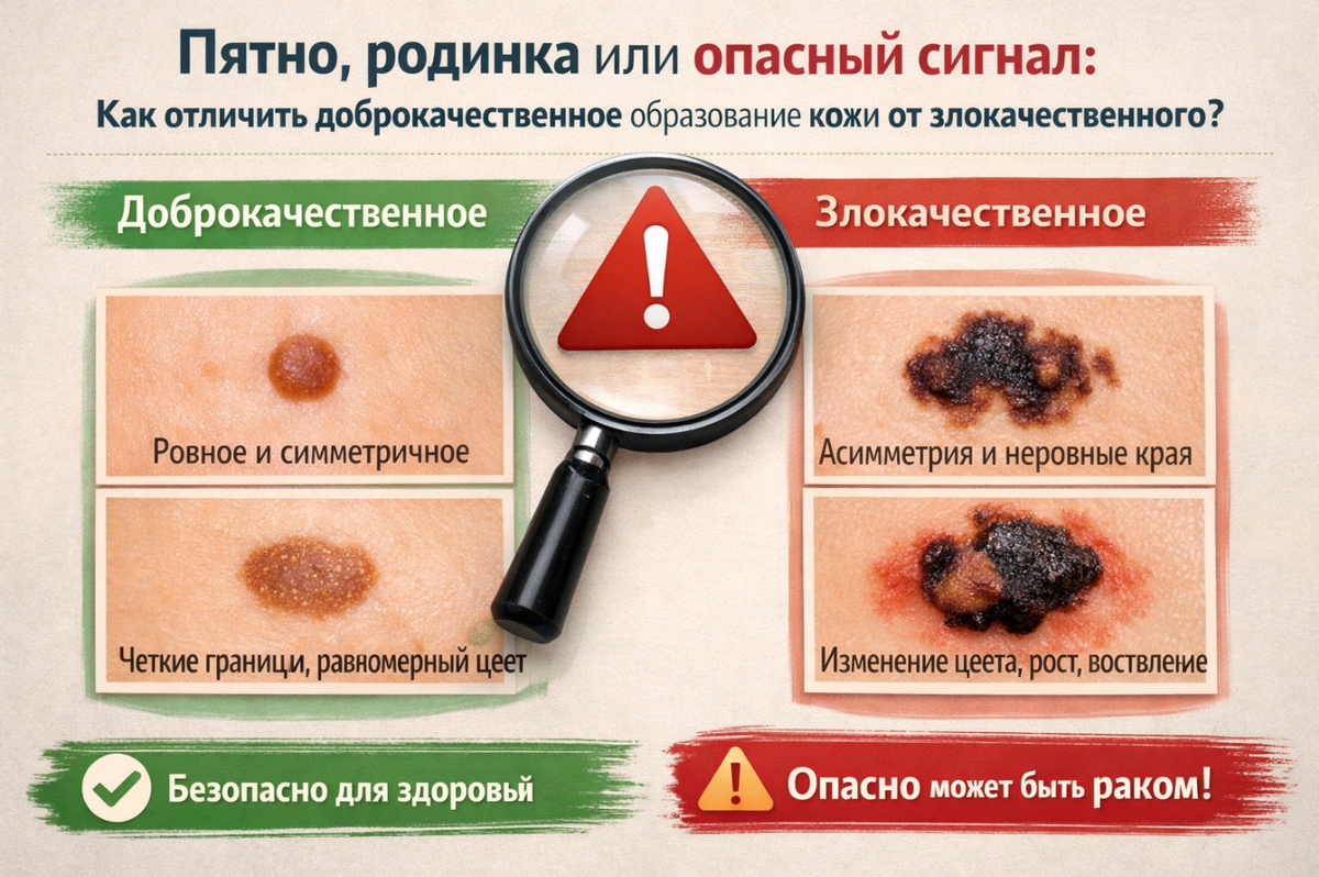 При этом важно сохранять баланс: не каждое пятно — рак. Большинство кожных образований всё же доброкачественные. Но опасные варианты внешне иногда умеют маскироваться под безобидные.