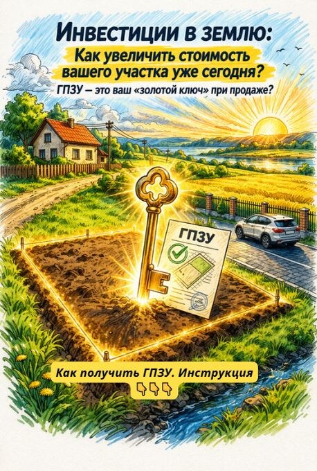 ! Многие из вас приобрели вместе с нами участки в Нижегородской и Московской областях с целью дальнейшей перепродажи. Чтобы ваш актив рос в цене, важно не просто ждать, а грамотно подготовить «фундамент» для будущего покупателя. Один из самых важных документов, который должен быть на руках у инвестора — это ГПЗУ (Градостроительный план земельного участка). ❓ Почему ГПЗУ — это ваш «золотой ключ» при продаже? При перепродаже участка покупатель хочет быть уверен, что он сможет построить там дом своей мечты без юридических «сюрпризов». ГПЗУ подтверждает: • Безопасность сделки: Документ показывает отсутствие скрытых обременений (охранные зоны ЛЭП, газопроводов и т.д.). • Готовность к строительству: В плане четко обозначено «пятно застройки» — место, где разрешено возводить дом. • Инфраструктурный потенциал: Официальная информация о возможностях подключения к газу и электричеству. Наличие свежего ГПЗУ повышает ликвидность участка и позволяет обоснованно ставить цену выше, чем у «пустых