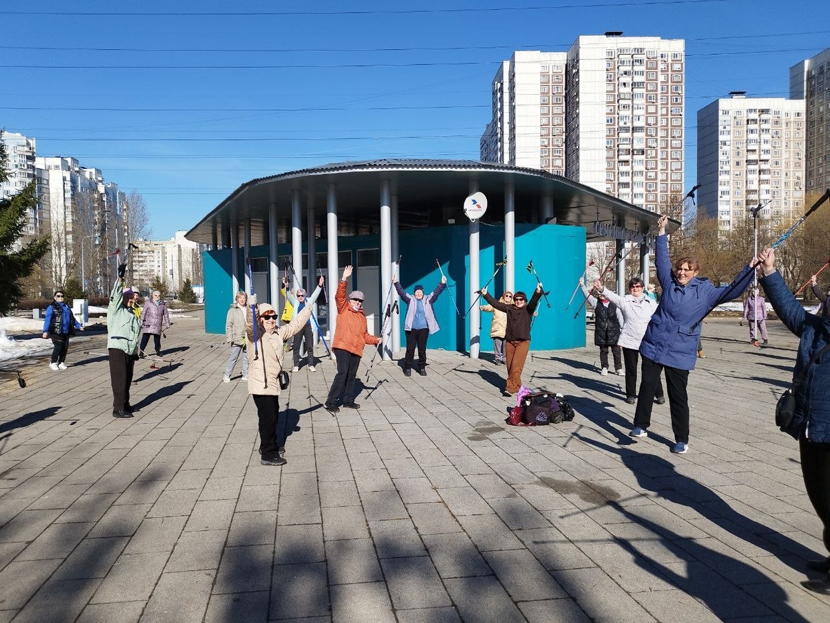 Группа любителей скандинавской (северной) ходьбы, которая несколько раз в неделю по утрам занимается в парке 850-летия Москвы, передает привет всем подписчикам канала! Подписывайтесь на ТГ - канал "Движуха в Марьино"!