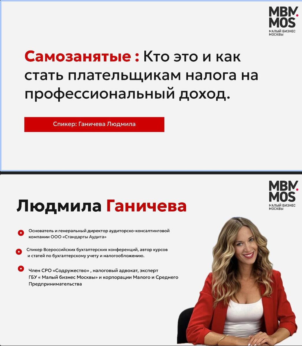 ГБУ Малый бизнес Москвы совместно с "Моей Карьерой" проводят отдельный проект для тех, кто планирует открыть свое дело. Проект состоит из ряда интенсивов по 4 вебинара, каждый из которых ведет отдельный спикер. Один из вебинаров этого интенсива э посвящен теме, как начать бизнес в качестве самозанятого или ИП на НПД; 1. Самозанятые : Кто это и как стать плательщикам налога на профессиональный доход 2. В чем отличие ИП и самозанятого 3. Какие преимущества у режима НПД? 4.Минусы самозанятости 5.Документооборот у плательщиков НПД : от счета до акта 6. Расчет и оплата НПД Регистрация по ссылке: https://clck.ru/3SQ3ef