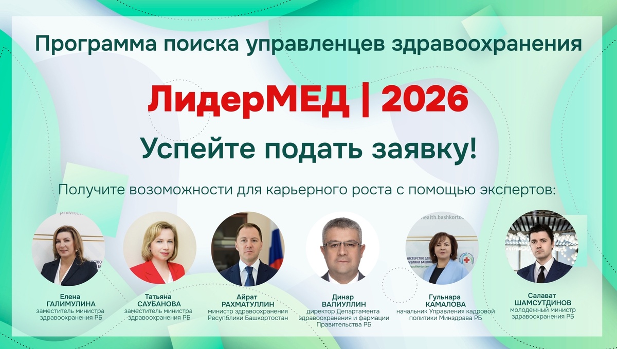 Министерство здравоохранения республики объявило о запуске уникального проекта для действующих и будущих руководителей медицинской отрасли — «ЛидерМЕД – 2026». Программа направлена на поиск и подготовку квалифицированных кадров, способных решать актуальные вызовы современного здравоохранения. Ключевым этапом станет стратегическая сессия в Уфе, которая пройдет 30 апреля. На этой площадке главные врачи, их заместители, руководители отделений и частных клиник будут разрабатывать решения для развития региональной медицины. Успешное участие в программе дает специалистам весомое преимущество: приоритет при вхождении в кадровый резерв Минздрава РБ и возможность ускоренного карьерного роста. Сроки подачи заявок: с 21 марта по 10 апреля 2026 года.
