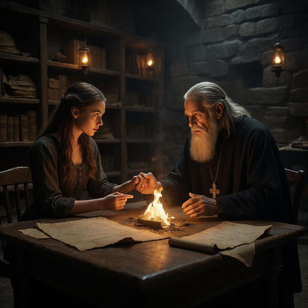 Он молчал. Бумага в его руках казалась раскалённой. Он мог сделать сейчас только одно — арестовать её. Или… сжечь эту бумагу. Уничтожить признание. Дать ей шанс. Но это означало стать соучастником. Предать свою веру, свой сан, своего архимандрита.