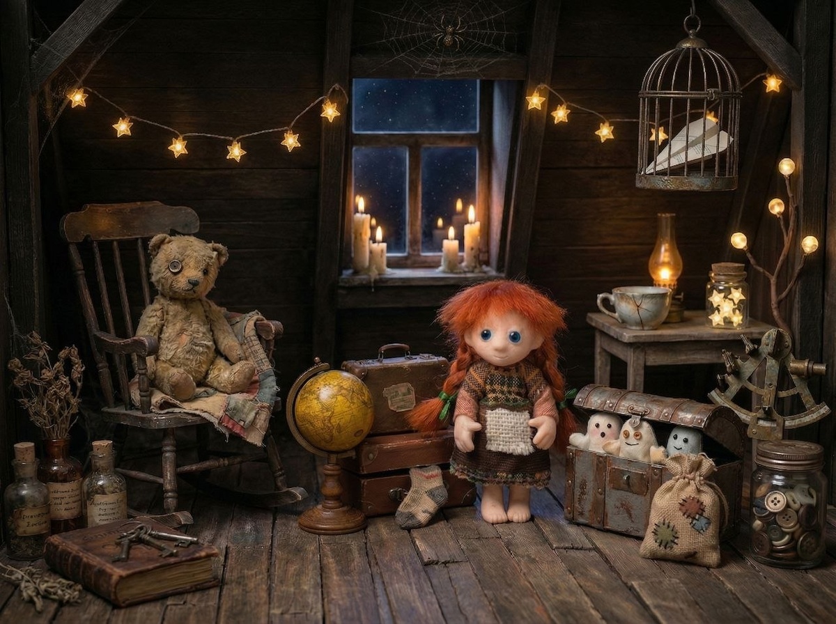 Умела оживать и Поленька. И что ей было делать? Все время плакать - это ведь очень скучно! Так что однажды ночью утёрла она слезы, и начала обживаться. Ведь и на чердаке можно жить! Если его как следует убрать и отмыть.