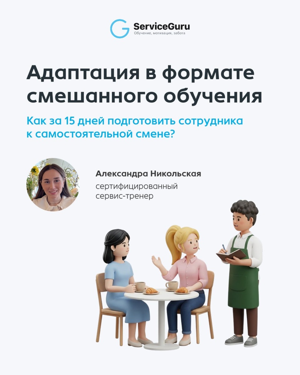 🚀 Раньше адаптация выглядела так: стажеру давали огромную бумажную папку и отправляли наблюдать за работой уставшего наставника. А в результате каша в голове и ошибки на смене. 🎮 Blended Learning — формат, где онлайн-технологии встречаются с живой практикой. Александра Никольская, сертифицированный сервис-тренер Novikov School, которая провела более 1500 программ по обучению и развитию персонала, показала, как может выглядеть современная система адаптации в формате смешанного обучения. В карточках — план на 15 дней ⤴️ 📲 ServiceGuru в MAX