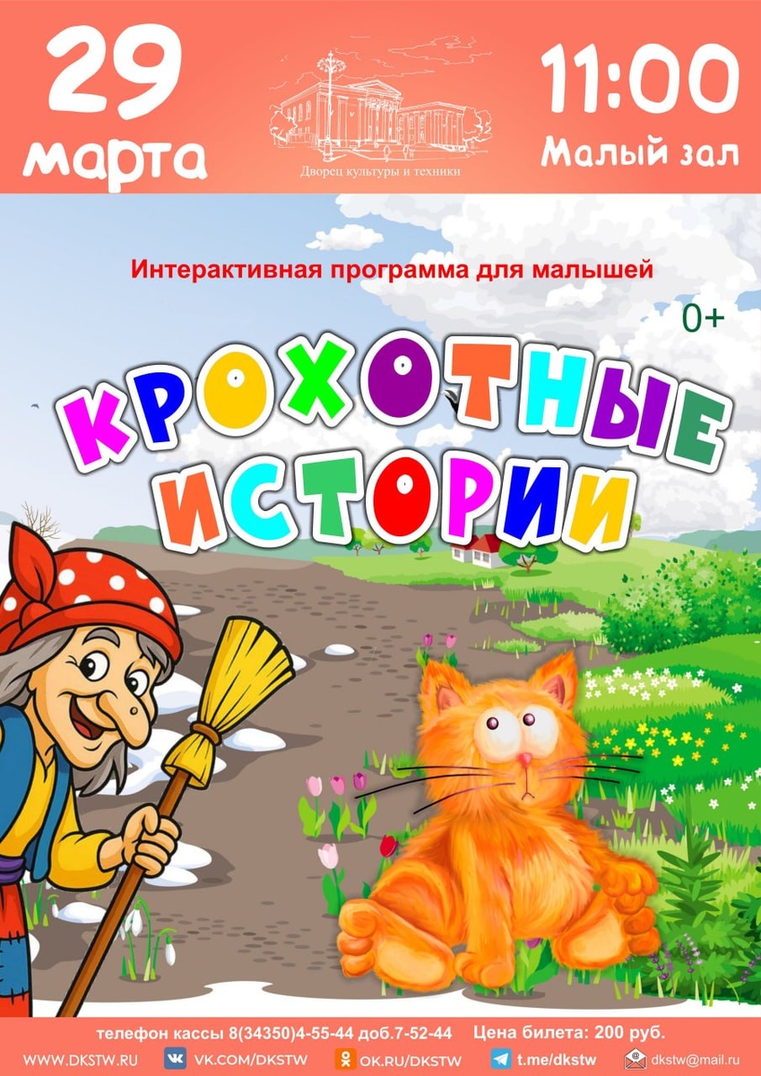 " 🌷Вас ждёт увлекательное путешествие в мир весенних чудес, веселые игры, интересные задания и, конечно же, музыкальные сюрпризы от наших творческих коллективов! 🎵🎵🎵 Стоимость билета 200 рублей Телефон кассы: 8(34350) 4-55-44 доб.7-52-44