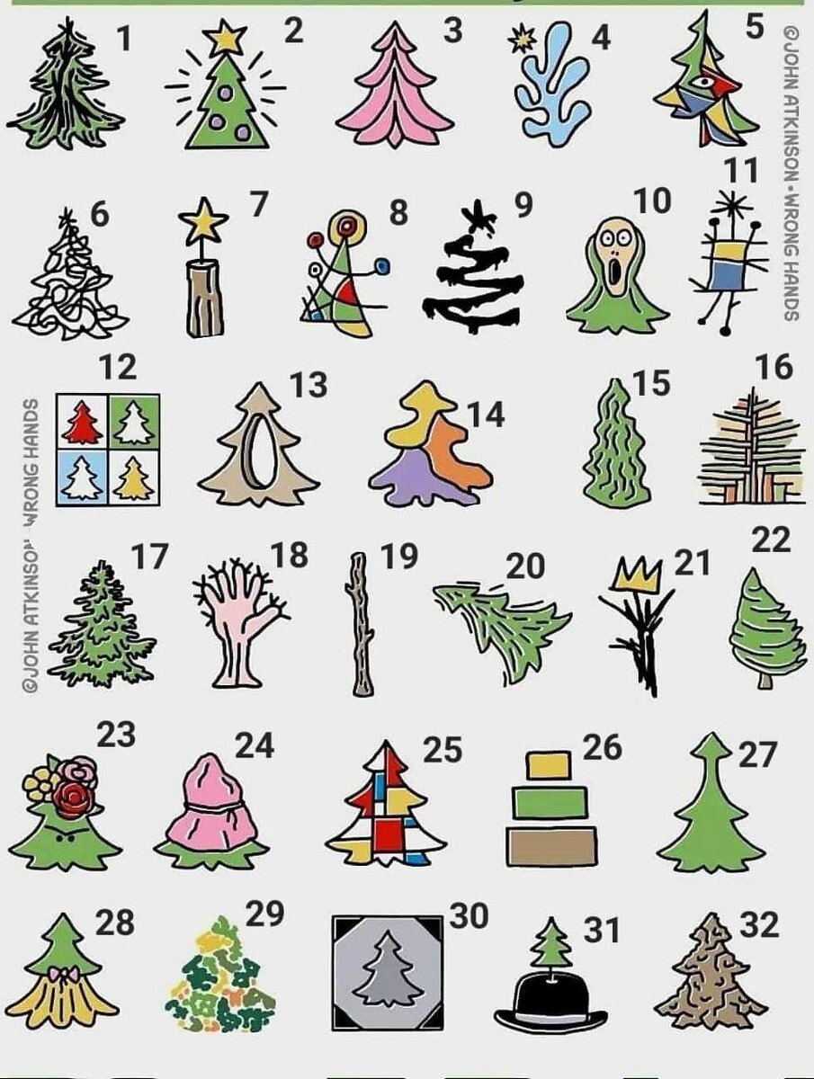 🌲 Пока я готовлю для вас горячее весеннее обострение, предлагаю красиво зафиналить тему зимы. Этот пост — отличная проверка на то, насколько мощным может быть личный бренд и авторский стиль. Даже самую примитивную елку можно подать так, что вы узнаете автора. Никаких лишних деталей, только характерный почерк автора. Задача простая: угадать, в стиле какого художника нарисована каждая из этих елок. Для затравки: здесь точно притаились Уорхол, Дали и Пикассо. С остальными придется пошевелить извилинами. 〰️〰️〰️〰️〰️〰️〰️〰️ Большая просьба: не привлекайте Google к обсуждению. Загадка на узнавание, а не на скорость поиска в сети. Надеюсь, правильные ответы нам не пригодятся. Но если совсем отчаемся и признаем поражение, выложу разгадку в комментариях. 〰️〰️〰️〰️〰️〰️〰️〰️ 💬 Пишите свои варианты: Номер елки = Фамилия художника. Если еще и фото подтверждение приложите, то ваще круто. Ответ тут