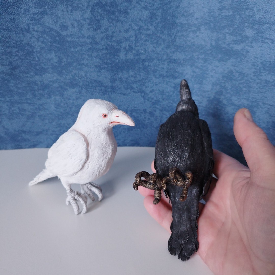 Покрыла плавно ватой крыло и с имитировала инструментом оперенье дальше покрасила крылья и хвост. Вот такие вот вороны у меня получились, как живые.