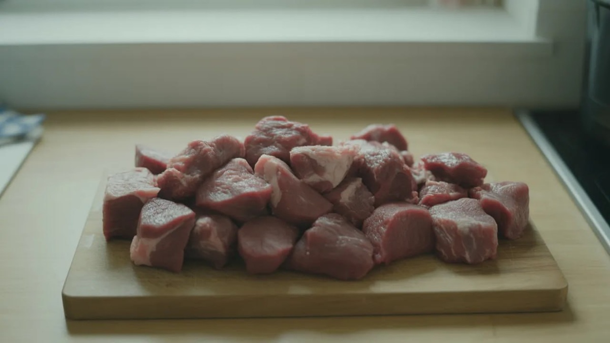 Выберите свежее и качественное мясо. Нарежьте его на куски среднего размера. Слишком мелкие куски пересохнут, а слишком большие могут не прожариться внутри.