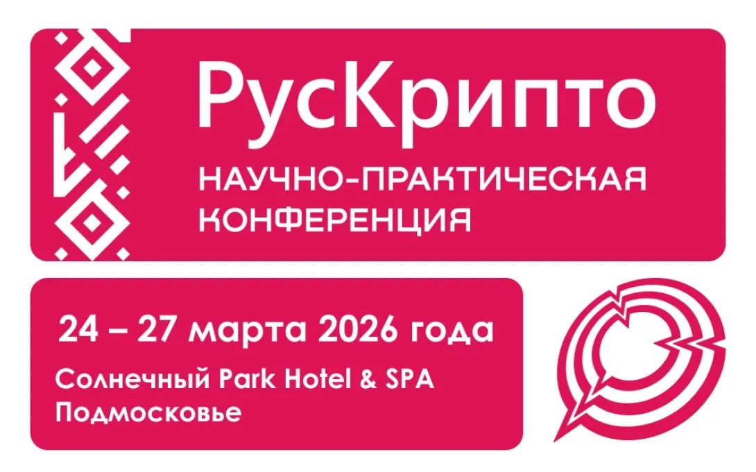 ⬜️⬜️⬜️⬜️ РусКрипто’2026 С 24 по 27 марта 2026 года в Подмосковье состоится 28-я международная научно-практическая конференция «РусКрипто’2026» — ключевое отраслевое событие, определяющее векторы развития криптографии и информационной безопасности России. Основные тематические блоки «РусКрипто’2026»: 🔵 Криптография и криптоанализ; 🔵 Информационная безопасность и криптография кредитно-финансовой сферы; 🔵 Информационные системы государства, кибербезопасность и криптография; 🔵 Проекты, технологии и решения; 🔵 Криптографические средства защиты информации: разработка, сертификация, внедрение и эксплуатация; 🔵 РБПО и подпись ПО, построение единого пространства доверия к российскому программному обеспечению; 🔵 Криптографические решения для киберфизических систем; 🔵 Криптография в медицине; 🔵 Аппаратная безопасность; 🔵 Перспективные исследования в области кибербезопасности. 🖇 Подробнее о мероприятии на сайте MAXимально на связи #GDS #анонс