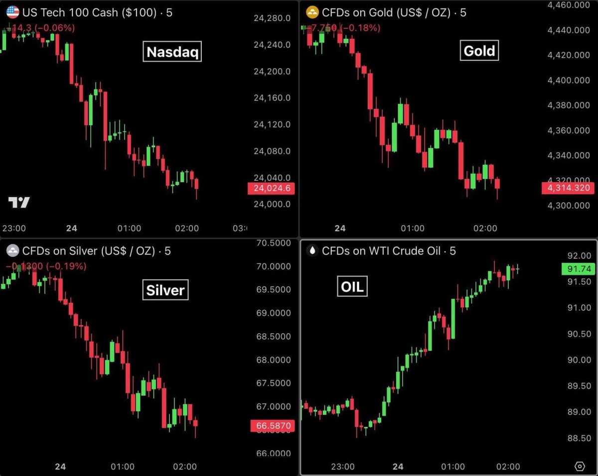 1. На нефтеперерабатывающем заводе в Порт-Артуре, Техас, после взрыва вспыхнул масштабный пожар. 2. Сегодняшние авиаудары США и Израиля нанесли удары по энергетическим объектам Ирана, включая газопровод недалеко от электростанции в Хорремшехре, что обострило конфликт спустя несколько часов после объявления президентом Трампом пятидневной паузы. Эти атаки на критически важную энергетическую инфраструктуру могут спровоцировать ответные действия Ирана. Мы уже видели подобную картину раньше. Даже незначительные инциденты на НПЗ могут нарушить производство или привести к факельному сжиганию. Пока слишком рано говорить о точной причине, но рынки отреагировали мгновенно: - нефть подскочила более чем на 2% и достигла $91,90. -золото также снизилось на 3% после новостей и опустилось ниже $4320. -серебро упало на 5% за последние 2 часа. -фьючерсы в США перешли в отрицательную зону.