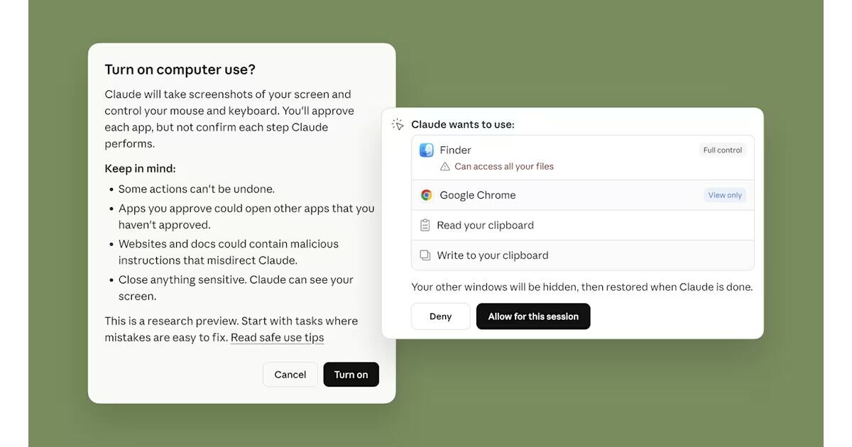Anthropic расширила возможности своих инструментов Claude Code и Claude Cowork, позволив им выполнять задачи напрямую на компьютере пользователя. Теперь эти ИИ-системы могут открывать файлы, пользоваться браузером и запускать инструменты для разработчиков. Ещё по теме: При включении этой функции Claude в первую очередь будет пытаться использовать интеграции с сервисами вроде Google Workspace или Slack. Однако если подходящего коннектора нет, ИИ всё равно сможет выполнить задачу с помощью ресурсов компьютера. Для активации таких действий чатбот должен запрашивать разрешение у пользователя. ⚡Подписывайтесь на канал itzine и канал подкаста ForGeeks в Telegram! Там самые свежие новости про технологии, гаджеты и космос. Anthropic рекомендует не использовать эту функцию для обработки конфиденциальных данных, поскольку она находится в стадии экспериментального предпросмотра и может изменяться с учётом отзывов пользователей. На старте доступ к работе с файлами на компьютере получат подписчики