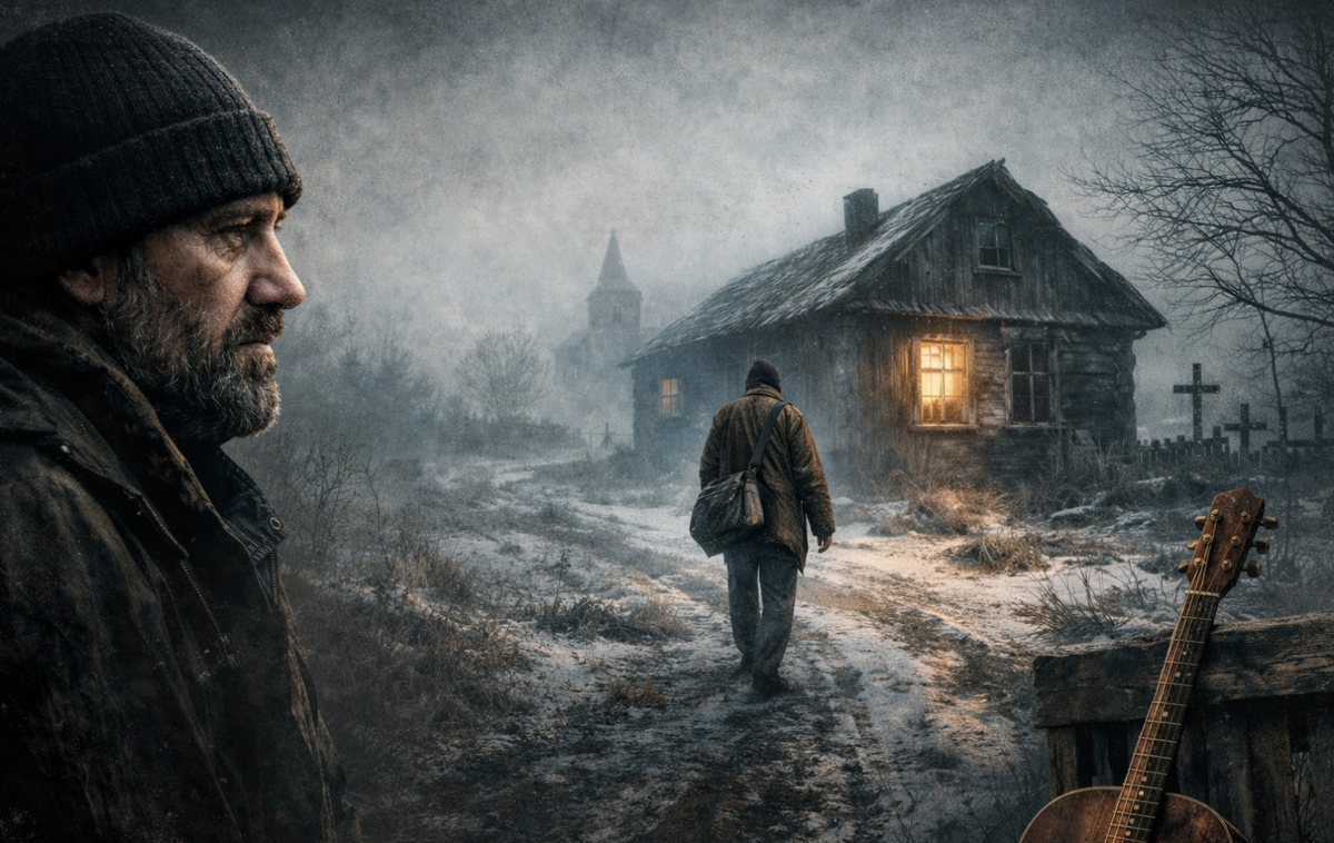 Я не собирался в тот вечер ничего писать. Честно. Сидел как обычно, на кухне, чай остывает, за окном ветер гоняет снег по двору, в подъезде кто-то ругается. Обычная жизнь, как у всех. Ни вдохновения, ни мыслей. Пусто. Такие вечера у меня бывают часто. Когда вроде и гитара рядом, и слова где-то внутри есть, а достать не получается. И ты просто сидишь, слушаешь, как батарея щёлкает, и думаешь - да ну его всё. Я вышел покурить. Во дворе было тихо. Только фонарь моргал, как будто тоже устал. У лавки сидел мужик. Не старый, но и не молодой уже. Лицо уставшее, руки в карманах, куртка какая-то тонкая, явно не по погоде. Я сначала не обратил внимания. Таких много. У нас во дворе каждый второй с историей, просто никто их не слушает. Он попросил сигарету. Я дал. Он затянулся и сказал: Домой иду, только дома нет. И всё. Вот эта фраза меня и пробила. Я сначала даже не понял. А потом как будто внутри что-то щёлкнуло. Не "негде жить", не "всё потерял", а именно так - домой иду, только дома нет. Я се