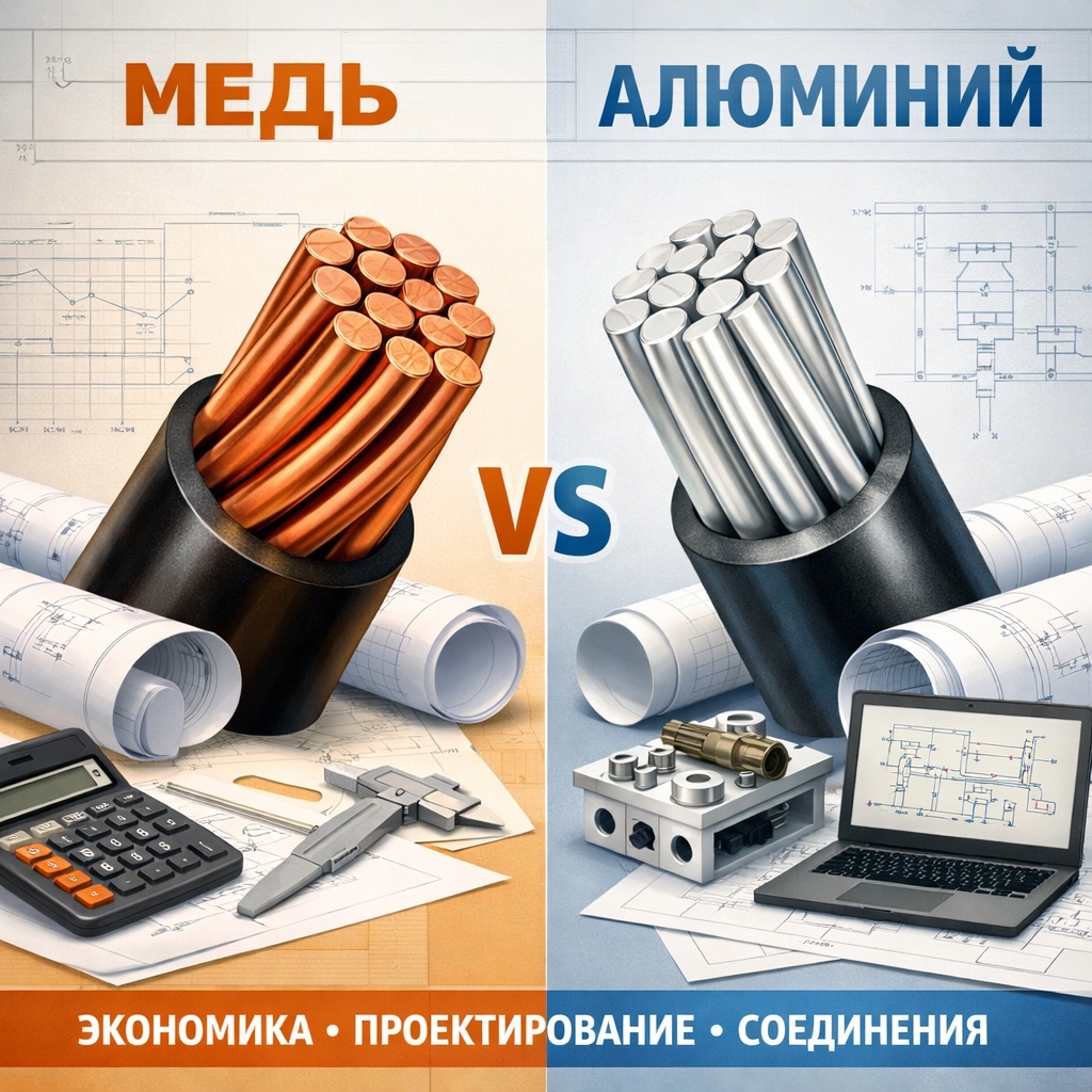Спор «медь или алюминий» в электротехнике живёт десятилетиями. И в этом споре нет одного победителя. Медь действительно проводит лучше и позволяет делать более компактные линии. Алюминий заметно легче и часто выгоднее на больших длинах и больших сечениях. Поэтому профессиональный вопрос звучит не «что лучше вообще», а что лучше для конкретного объекта, конкретной трассы и конкретной схемы подключения.