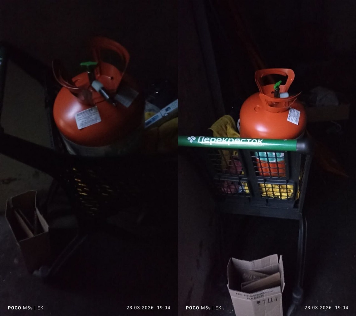 В мусорокамере одного из многоквартирных домов района Троицк оставили газовый баллон.