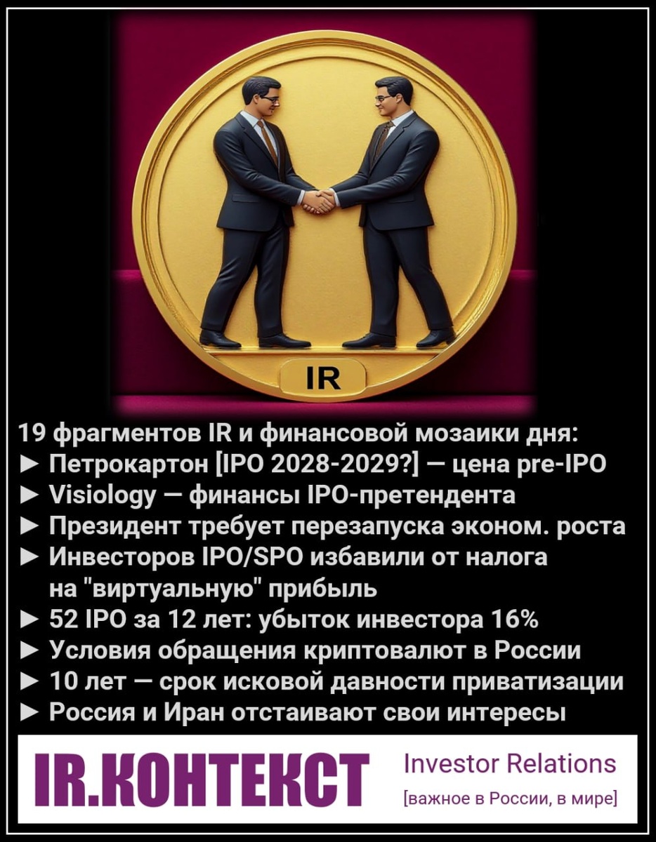 ► Петрокартон [IPO 2028-2029?] — производитель гофрокартона начинает предварительное публичное размещение акций (pre-IPO) на Московской бирже.