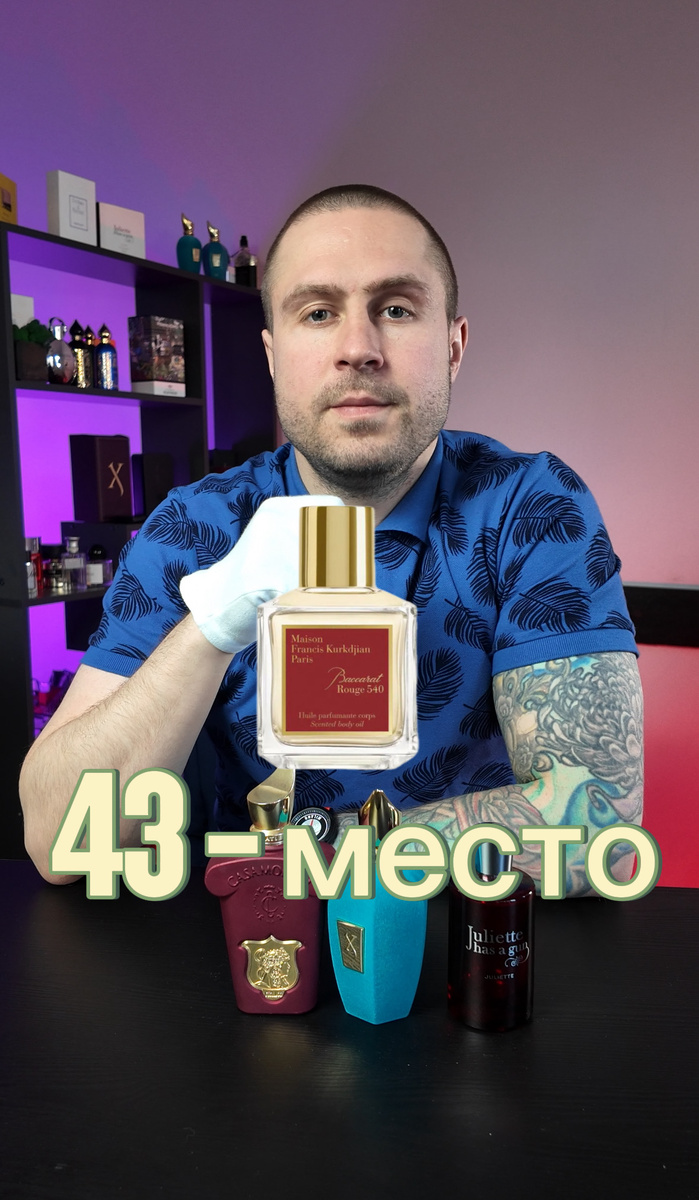В моем топе Baccarat Rouge 540 занимает 43-е место. Не потому, что он плох. А потому что выше — ароматы, которые при всей своей популярности сохранили лицо. Которые не растворились в миллионе клонов. Которые остались собой.